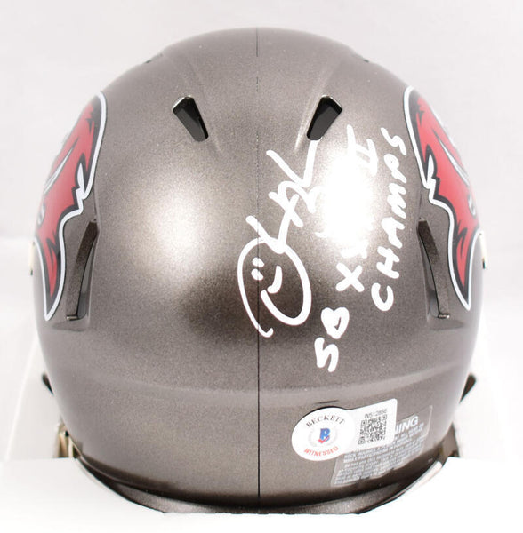 Derrick Brooks Autographed Buccaneers 97-13 Speed Mini Helmet w/SB Champs- Beckett W Hologram *White This is a Derrick Brooks of the Tampa Bay Buccaneers hand autographed Riddell football 97-13 speed mini helmet. Inscribed with SB Champs. This item has a Beckett Witnessed Authentication, which comes with a numbered hologram and a QR code for verification. You can view this item on the Beckett website. It was signed either at a public autograph appearance or a private signing. This is a stock photo of the item. Although you may not receive this exact item, the item you receive is virtually identical, brand new, and in great shape.