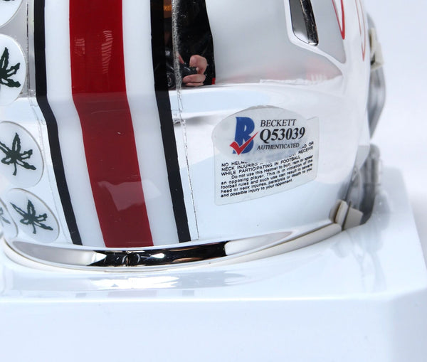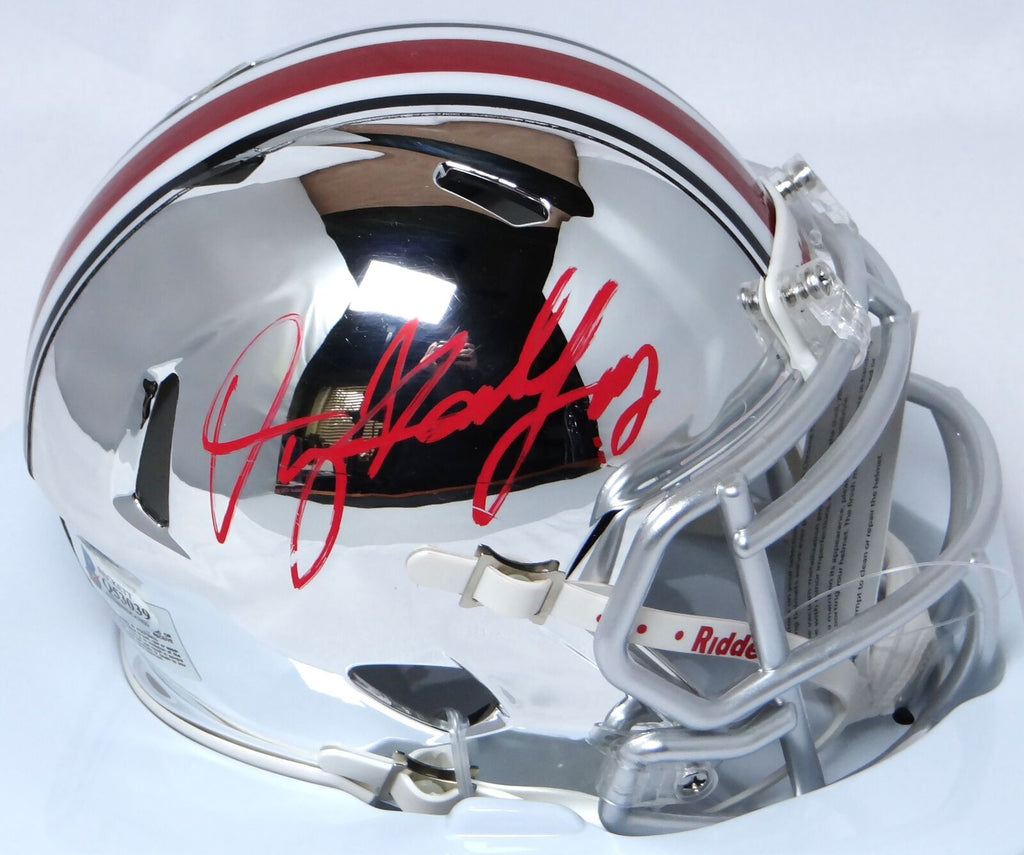This is a hand autographed helmet of Dwayne Haskins of the Ohio State University. This is a Riddell Football Chrome Speed Mini helmet. This item has a Beckett Authentication, which comes with a numbered and a matching Beckett Certificate of Authenticity. You can view this item on the Beckett Authentication website, and it shows when and where the item was signed. It was signed either at a public autograph appearance or a private signing. This photo is the exact item that you will be receiving. Please see pictures for further details. This is a hand autographed helmet of Dwayne Haskins of the Ohio State University. This is a Riddell Football Chrome Speed Mini helmet. This item has a Beckett Authentication, which comes with a numbered and a matching Beckett Certificate of Authenticity. You can view this item on the Beckett Authentication website, and it shows when and where the item was signed. It was signed either at a public autograph appearance or a private signing. This photo is the exact item that you will be receiving. Please see pictures for further details.