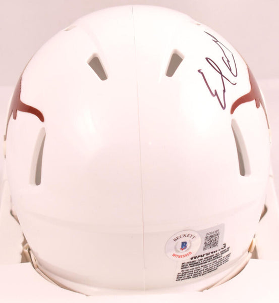 Earl Campbell Autographed Texas Longhorns Speed Mini Helmet - Beckett W Hologram *Black This is a Hand Autograph of Earl Campbell of the University of Texas Longhorns on a Riddell Football Speed Mini Helmet. This item has a Beckett Witness Authentication, which comes with a Beckett #'ed Hologram and a QR code for verification. You can view this item on the Beckett website and it shows when and where the item was signed. It was signed either at a public autograph appearance or a private signing. This is a stock photo of the item. Although you may not receive this exact item, the item you receive is virtually identical and brand new in great shape.