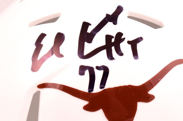 Earl Campbell Autographed Texas Longhorns Speed Mini Helmet w/HT - Beckett W Hologram *Black This is a Hand Autograph of Earl Campbell of the University of Texas Longhorns on a Riddell Football Speed Mini Helmet. Inscribed HT 77. This item has a Beckett Witness Authentication, which comes with a Beckett #'ed Hologram and a QR code for verification. You can view this item on the Beckett website and it shows when and where the item was signed. It was signed either at a public autograph appearance or a private signing. This is a stock photo of the item. Although you may not receive this exact item, the item you receive is virtually identical and brand new in great shape.