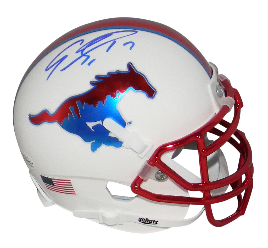 Emmanuel Sanders, former star wide receiver for the Mustangs, has hand signed this SMU Schutt mini helmet at a private signing. This item comes with a certificate of authenticity (COA) from Beckett Authentication Services and was signed in the presence of one of their representatives. You will receive a serial-numbered COA along with a matching serial-numbered sticker on the helmet. The authenticity can be verified online by entering the serial number.Item pictured may not be the exact item you will receive. It will be similar quality, and we guarantee your satisfaction.