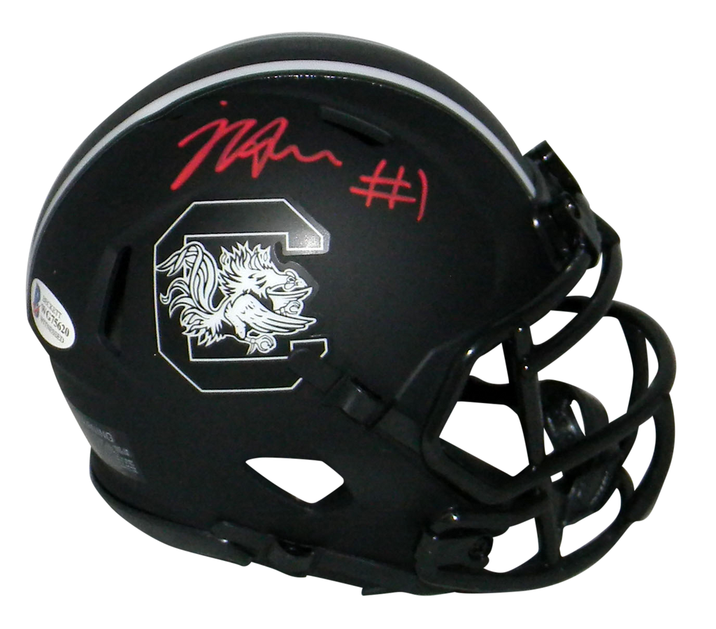 Jaycee Horn, former star cornerback for the Gamecocks, has hand signed this South Carolina Riddell Speed Eclipse mini helmet at a private signing. This item comes with a certificate of authenticity (COA) from Beckett Authentication Services and was signed in the presence of one of their representatives. You will receive a serial-numbered COA along with a matching serial-numbered sticker on the helmet. The authenticity can be verified online by entering the serial number.Item pictured may not be the exact item you will receive. It will be similar quality, and we guarantee your satisfaction.