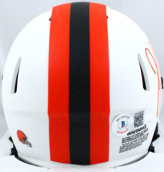 Jeremiah Owusu-Koramoah Signed Cleveland Browns Lunar Speed Mini- BA W Hologram This is a Jeremiah Owusu-Koramoah of the Cleveland Browns hand autographed Lunar mini helmet. This item has a Beckett Witness Authentication, which comes with a Beckett numbered Hologram and a QR code for verification. You can view this item on the Beckett Authentication website and it shows when and where the item was signed. It was signed either at a public autograph appearance or a private signing. This is a stock photo of the item. Although you may not receive this exact item, the item you receive is virtually identical, brand new, and in great shape.