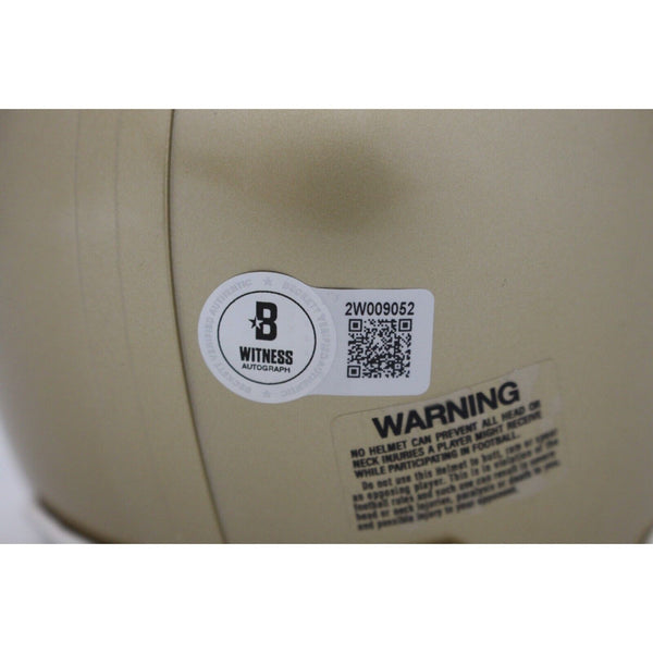The number in the listing title is just an inventory sku for our records and is not the authentication number. The item pictured is a stock photo unless otherwise noted. This is a Notre Dame Fighting Irish VSR4 Mini Helmet that was personally autographed by Jerome Bettis. Includes a certificate of authenticity from Beckett Authentication Services (BAS) and Denver Autographs.