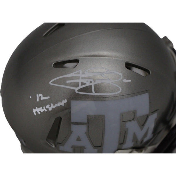 The number in the listing title is just an inventory sku for our records and is not the authentication number. The item pictured is a stock photo unless otherwise noted. This is a Texas A&M Aggies Flash Mini Helmet that was personally autographed by Johnny Manziel with "Heisman" inscription. Includes a certificate of authenticity from Beckett Authentication Services (BAS) and Denver Autographs.