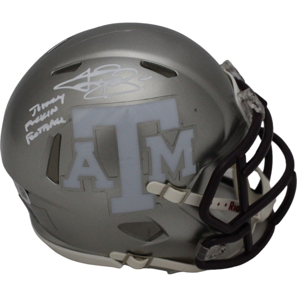 The number in the listing title is just an inventory sku for our records and is not the authentication number. The item pictured is a stock photo unless otherwise noted. This is a Texas A&M Flash Mini Helmet that was personally autographed by Johnny Manziel with "Johnny F*cking Football" inscription. Includes a certificate of authenticity from Beckett Authentication Services (BAS) and Denver Autographs.FREE SHIPPING within the USA on orders over $10!