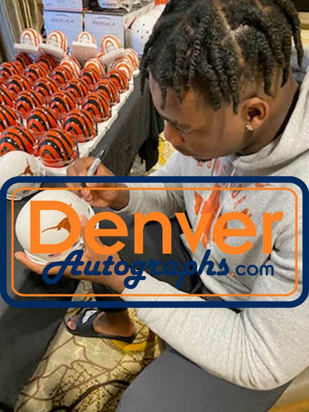 Joseph Ossai Autographed Texas Longhorns Schutt Mini Helmet Beckett BAS 34698 The number in the listing title is just an inventory sku for our records and is not the authentication number. The item pictured is a stock photo unless otherwise noted. This is a Texas Longhorns Schutt mini helmet that was personally autographed by Joseph Ossai. Includes a certificate of authenticity from Beckett Authentication Services (BAS) and Denver Autographs.