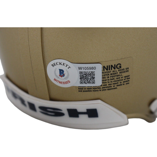 The number in the listing title is just an inventory sku for our records and is not the authentication number. The item pictured is a stock photo unless otherwise noted. This is a Notre Dame Fighting Irish VSR4 Mini Helmet that was personally autographed by Lou Holtz. Includes a certificate of authenticity from Beckett Authentication Services (BAS) and Denver Autographs.