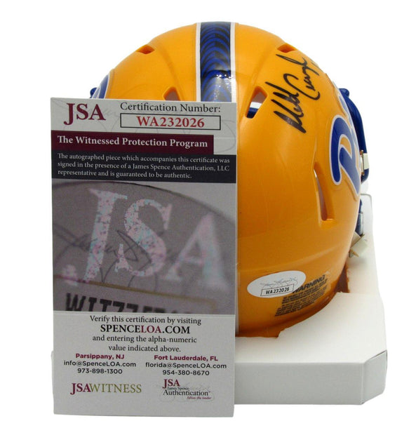 Matt Cavanaugh Autographed Gold Speed Mini Football Helmet Pitt. This helmet is authenticated by JSA and includes their Tamper-proof Sticker and Certificate of Authenticity.
