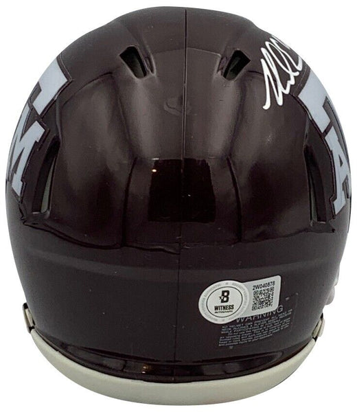 Mike Evans has autographed this Texas A&M mini helmet. Mini helmets are roughly 6x5x4. Autograph was witnessed and authenticated by Beckett Authentication Services (BAS) who was present for the signing with him and witnessed him signing your item. Simply scan the QR code on the hologram with your phone to verify.Stock image.
