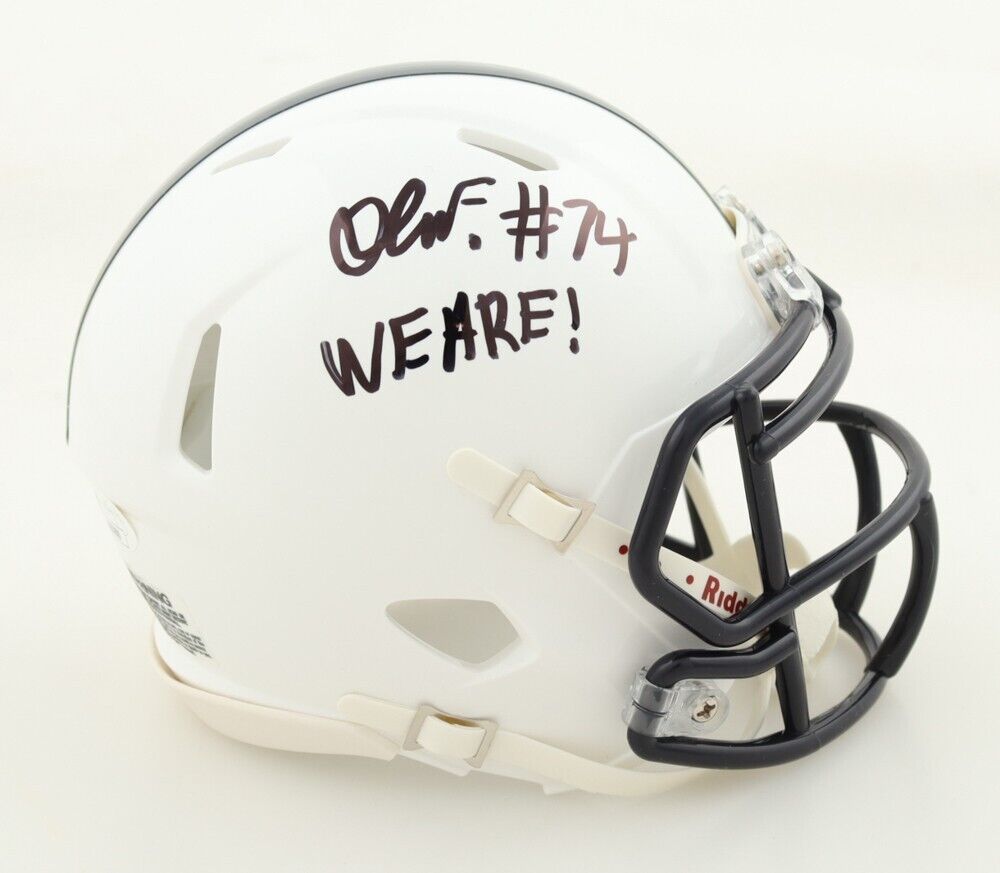 Riddell Penn State Nittany Lions speed mini helmet has been hand-signed and inscribed by Olumuyiwa Fashanu.The lot / autograph(s) includes an official James Spence Authentication (JSA) hologram and matching COA for authenticity purposes.Authentication: JSA COA