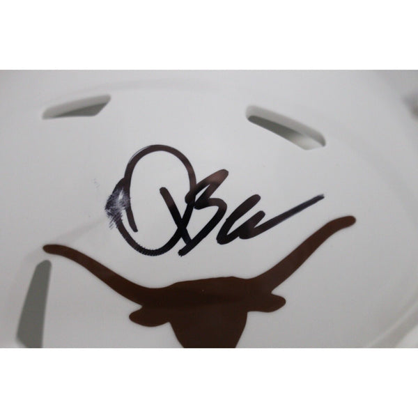 The number in the listing title is just an inventory sku for our records and is not the authentication number. The item pictured is a stock photo unless otherwise noted. This is a University of Texas Longhorns Speed Mini Helmet that was personally autographed by Quinn Ewers. This item has a defect, the autograph is smeared on this helmet. Includes a certificate of authenticity from Beckett Authentication Services (BAS) and Denver Autographs.