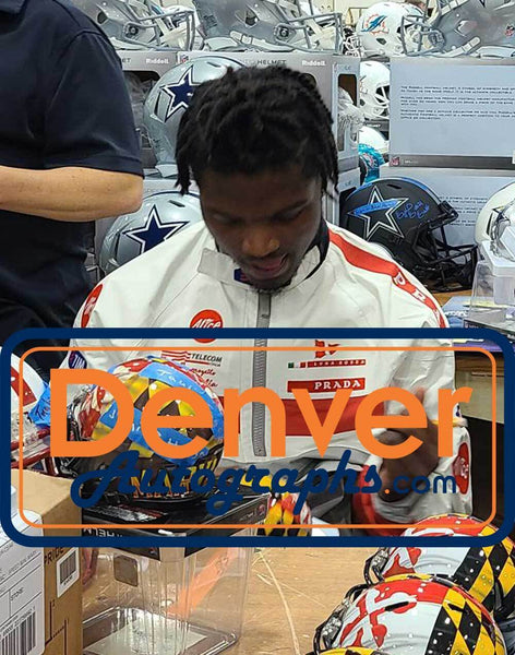 Rakim Jarrett Autographed Maryland Terrapins Pride Mini Helmet Beckett 37321 The number in the listing title is just an inventory sku for our records and is not the authentication number. The item pictured is a stock photo unless otherwise noted. This is a Maryland Terrapins pride speed mini helmet that was personally autographed by Rakim Jarrett. Includes a certificate of authenticity from Beckett Authentication Services (BAS) and Denver Autographs.
