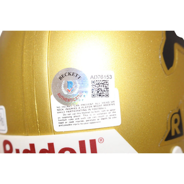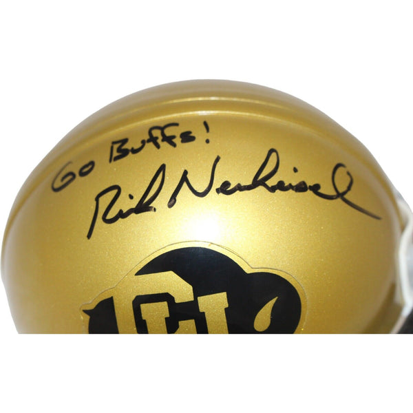 The number in the listing title is just an inventory sku for our records and is not the authentication number. This is the exact item that you will receive so please see pictures for condition. This is a Colorado Buffaloes VSR4 mini helmet that was personally autographed by Rick Neuheisel with Go Buffs inscription. Includes a certificate of authenticity from Beckett Authentication Services (BAS) and Denver Autographs.