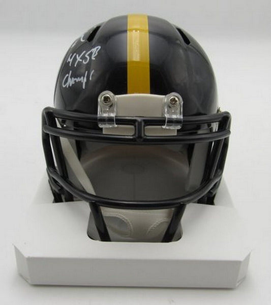 Rocky Bleier HOF Signed/Inscribed "4X SB Champ!" Black Mini Football Helmet Pittsburgh Steelers. This helmet is authenticated by BAS/Beckett Witness and includes their Tamper-proof Hologram Sticker.