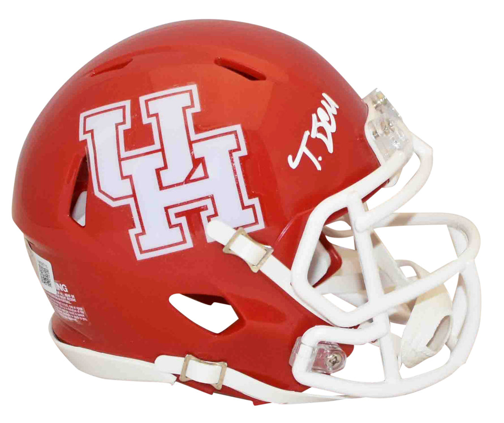 Tank Dell, former star wide receiver for the Cougars, has hand signed this Houston Riddell Speed mini helmet at a private signing. This item is authenticated by Beckett Authentication Services and was signed in the presence of one of their representatives. Their tamper-evident hologram featuring a QR code and serial number is on the item. The authenticity can be verified online by entering the serial number or scanning the QR code.Item pictured may not be the exact item you will receive. It will be similar quality, and we guarantee your satisfaction.