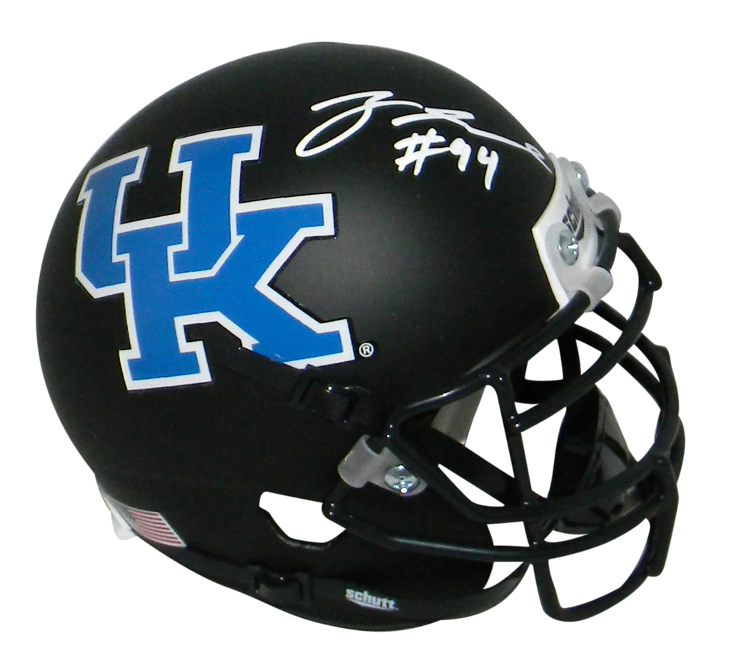 Za'Darius Smith, former star linebacker for the Wildcats, has hand signed this matte black Kentucky Schutt mini helmet at a private signing. This item comes with a certificate of authenticity (COA) from Beckett Authentication Services and was signed in the presence of one of their representatives. You will receive a serial-numbered COA along with a matching serial-numbered sticker on the helmet. The authenticity can be verified online by entering the serial number.Item pictured may not be the exact item you will receive. It will be similar quality, and we guarantee your satisfaction.