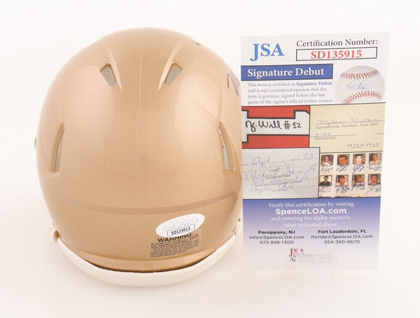 Riddell Boston College Eagles speed mini helmet. Hand-signed by Zay Flowers. Please note the signature was smudged during the signing (it's been marked down $40).The autograph(s) includes an official James Spence Authentication (JSA) "Signature Debut" hologram and COA. "Signature Debut" is the autographed memorabilia equivalent to a rookie card. The JSA definition of a "Signature Debut" is as follows: "Any item that is autographed and received by JSA prior to the last game of the signer's official rookie season.Authentication: JSA COA