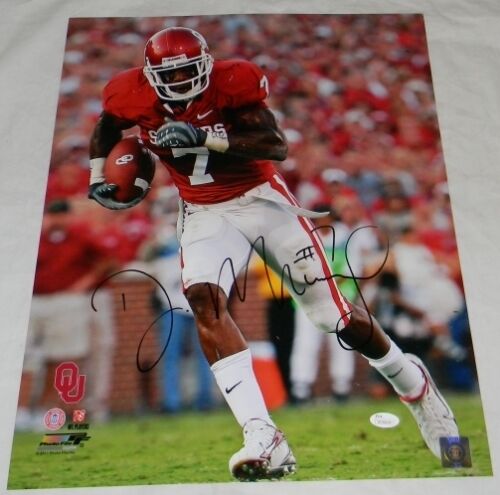 Demarco Murray, former All-American running back for the Oklahoma Sooners, has hand signed this 16x20 photo at a private signing. This item comes with a certificate of authenticity (COA) from JSA - James Spence Authentication and was signed in the presence of one of their representatives. You will receive a serial-numbered COA along with a matching serial-numbered sticker on the photo. The authenticity can be verified online by entering the serial number.Item pictured may not be the exact item you will receive. It will be similar quality, and we guarantee your satisfaction.