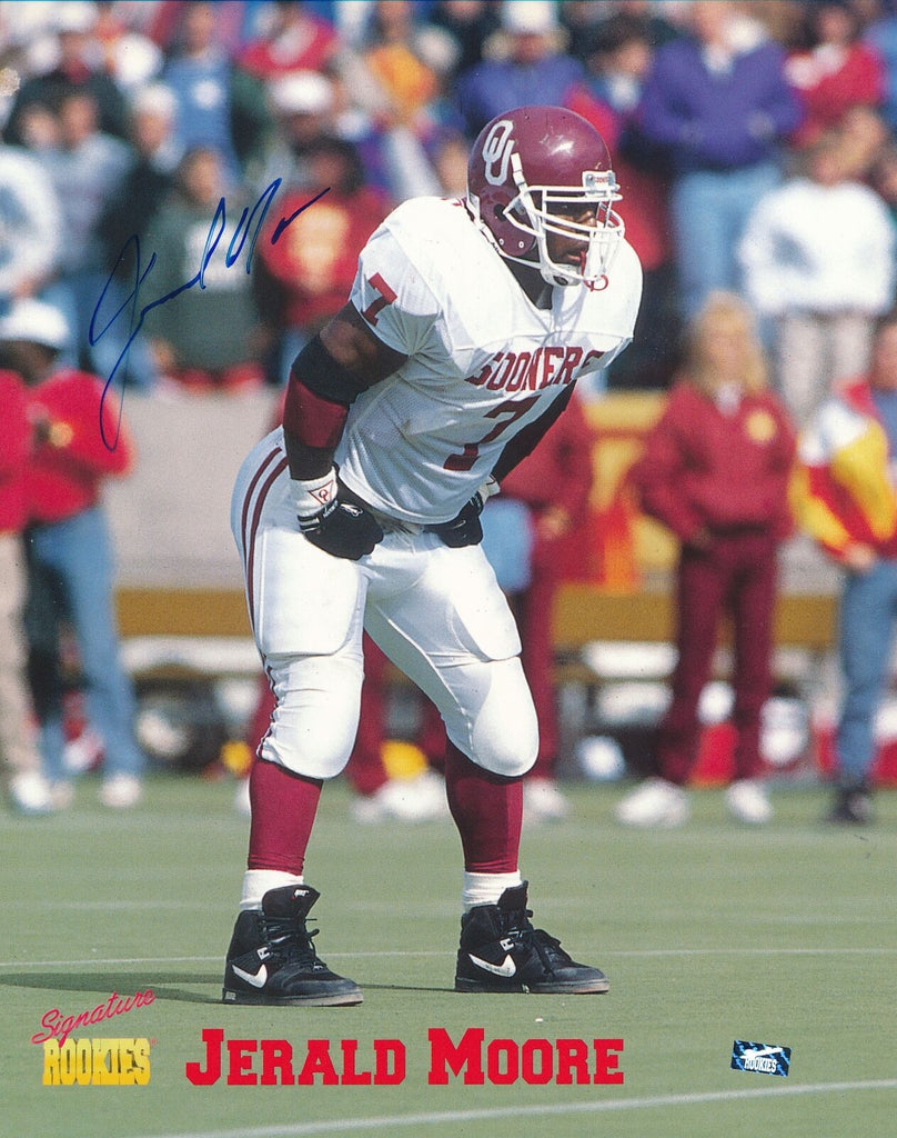Jerald Moore Autographed Signature Rookies 8x10 Photo University of Oklahoma. This photo is authenticated by Signature Rookies and includes their Tamper-proof Sticker.