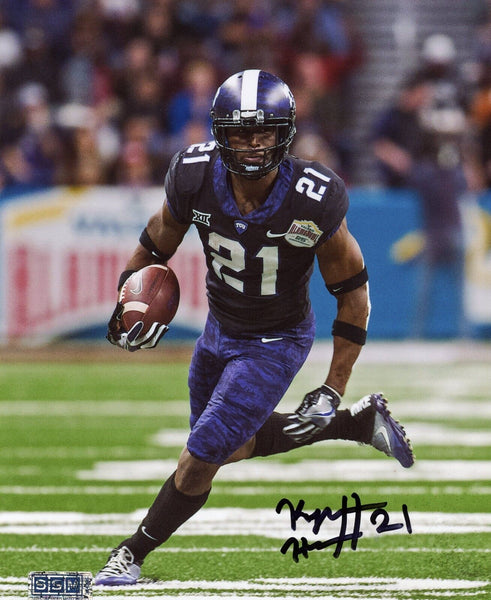 Kyle Hicks, former star running back for the TCU Horned Frogs, has hand signed this 8x10 photo at a private signing. This item comes with a certificate of authenticity (COA) from Signature Sports Marketing, one of the leaders in the industry. You will receive a paper COA along with matching serial-numbered holograms.Item pictured may not be the exact item you will receive. It will be similar quality, and we guarantee your satisfaction.