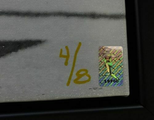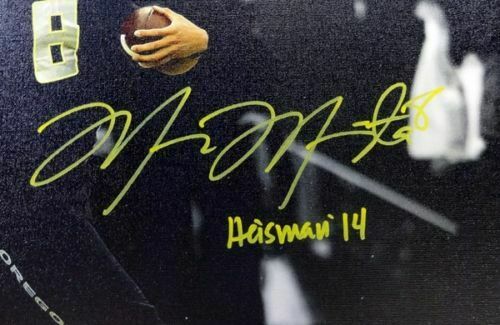 This is a framed 20x24 canvas photo, approximately 21 1/2 x 25 1/2 framed, that has been hand signed by Marcus Mariota.It comes with the Marcus Mariota serial numbered hologram and matching certificate of authenticity. This is a limited edition item and is hand numbered #/8.