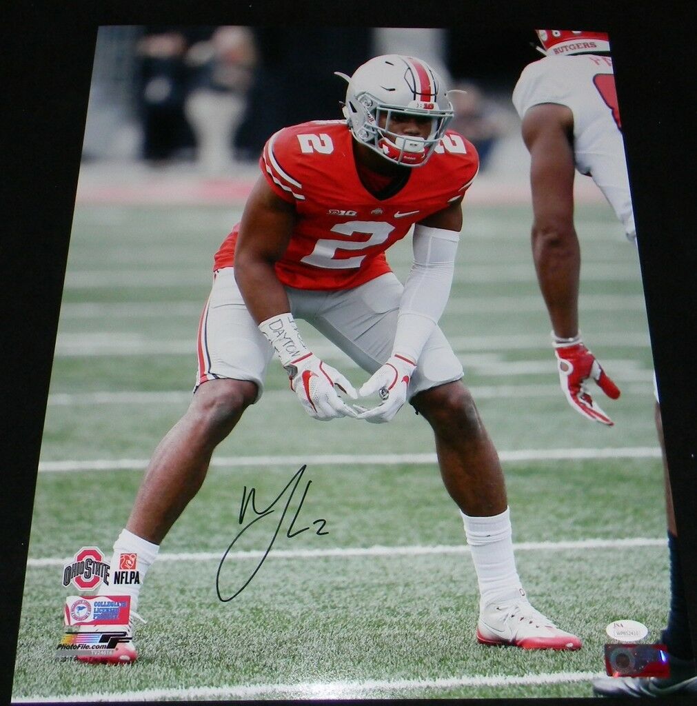 Marshon Lattimore, former All-American cornerback for the Ohio State Buckeyes, has hand signed this 16x20 photo at a private signing. This item comes with a certificate of authenticity (COA) from JSA - James Spence Authentication and was signed in the presence of one of their representatives. You will receive a serial-numbered COA along with a matching serial-numbered sticker on the photo. The authenticity can be verified online by entering the serial number.Item pictured may not be the exact item you will receive. It will be similar quality, and we guarantee your satisfaction.