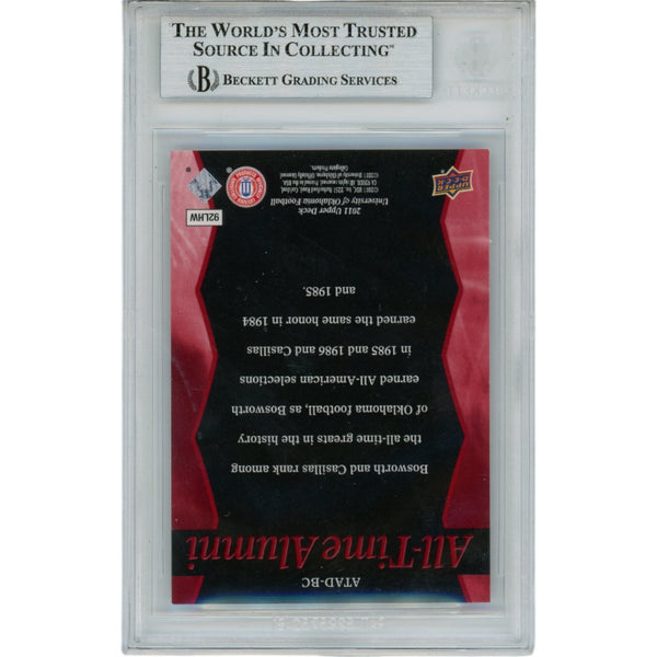 The number in the listing title is just an inventory sku for our records and is not the authentication number. The item pictured is a stock photo unless otherwise noted. This is an Oklahoma Sooners Upper Deck slabbed trading card that was personally autographed by Brian Bosworth and Tony Casilla. Includes a certificate of authenticity from Beckett Authentication Services (BAS) and Denver Autographs.FREE SHIPPING within the USA on orders over $10!