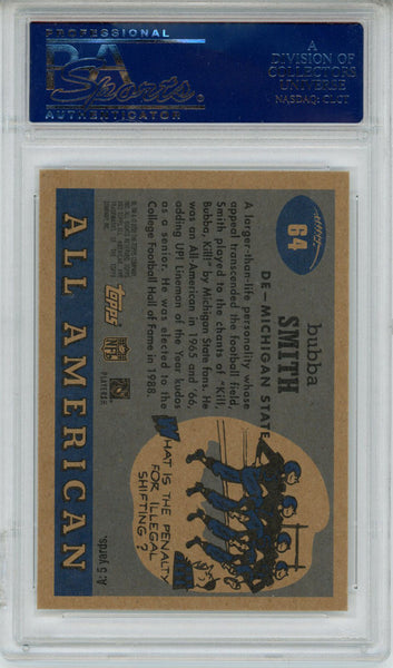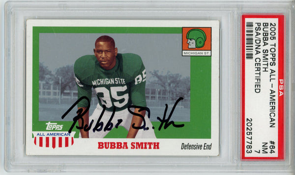 Bubba Smith Autographed 2005 Topps All American Trading Card PSA Slab 32613 The number in the listing title is just an inventory sku for our records and is not the authentication number. This is a 2005 Topps All American Trading Card that was personally autographed by Bubba Smith. This has been slabbed by Professional Sports Authentication (PSA) and includes a certificate of authenticity from Denver Autographs.
