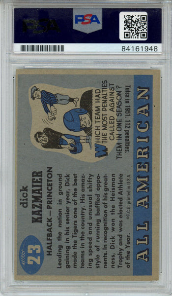 Dick Kazmaier Signed 1955 Topps All American #23 Trading Card PSA Slab 43697 The number in the listing title is just an inventory sku for our records and is not the authentication number. This is the exact item that you will receive so please see pictures for condition. This is a trading card that was personally autographed by Dick Kazmaier. This has been professionally slabbed by Professional Authentication Services (PSA) and includes a certificate of authenticity from Denver Autographs.
