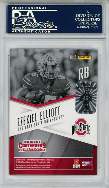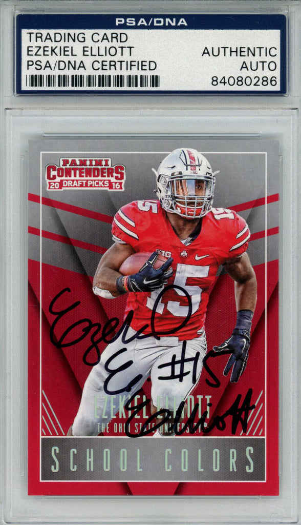 Ezekiel Elliott Signed 2016 Panini Contenders Draft Picks #5 Card PSA Slab 42679 The number in the listing title is just an inventory sku for our records and is not the authentication number. This is the exact item that you will receive so please see pictures for condition. This is a trading card that was personally autographed by Ezekiel Elliott. This has been professionally slabbed by Professional Sports Authentication (PSA) and includes a certificate of authenticity from Denver Autographs.