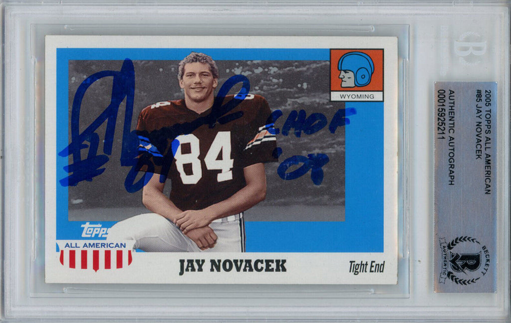 Jay Novacek Signed 2005 Topps All American #85 Trading Card Beckett Slab 42930 The number in the listing title is just an inventory sku for our records and is not the authentication number. The item pictured is a stock photo unless otherwise noted. This is a trading card that was personally autographed by Jay Novacek. This has been professionally slabbed by Beckett Authentication Services (BAS) and includes a certificate of authenticity from Denver Autographs.