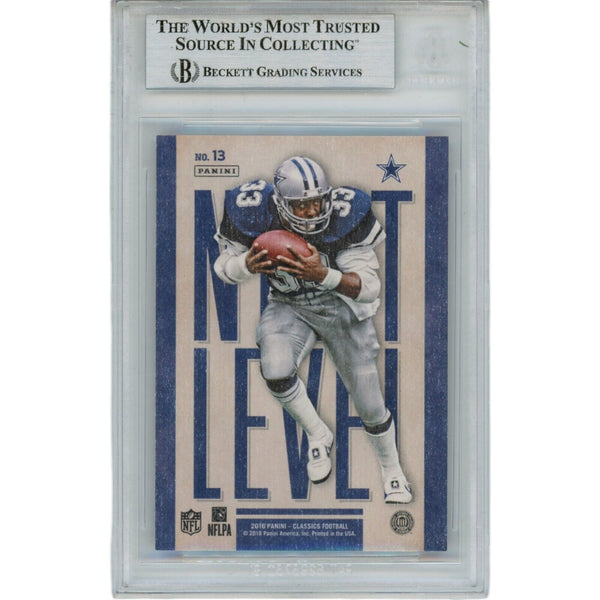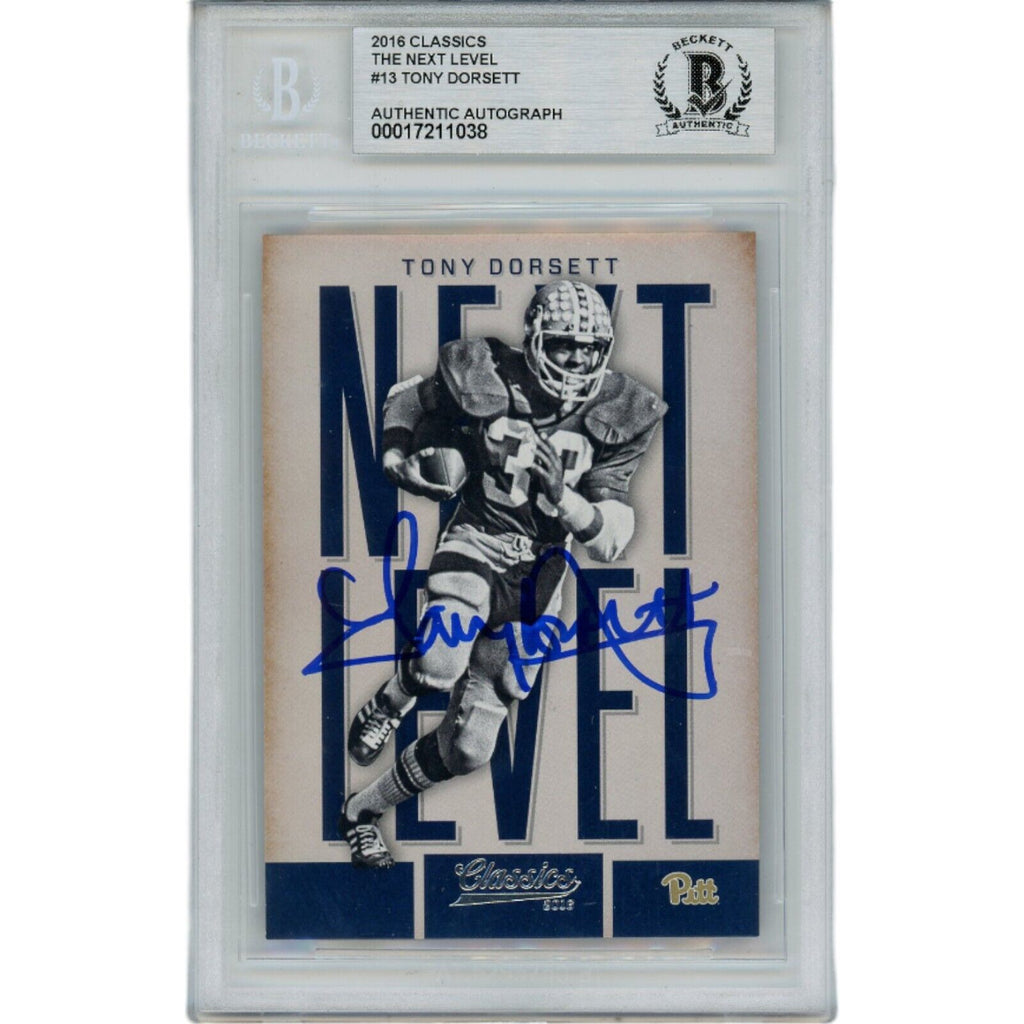 The number in the listing title is just an inventory sku for our records and is not the authentication number. The item pictured is the exact item you will receive, please see photos for condition. This is a Pittsburgh Panthers 2016 Classics 13 Slabbed Trading Card that was personally autographed by Tony Dorsett. Includes a certificate of authenticity from Beckett Authentication Services (BAS) and Denver Autographs.FREE SHIPPING within the USA on orders over $10!