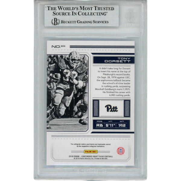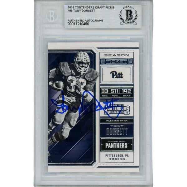 The number in the listing title is just an inventory sku for our records and is not the authentication number. The item pictured is a stock photo unless otherwise noted. This is a Pittsburgh Panthers 2018 Contenders Draft 95 Slabbed Trading Card that was personally autographed by Tony Dorsett. Includes a certificate of authenticity from Beckett Authentication Services (BAS) and Denver Autographs.FREE SHIPPING within the USA on orders over $10!