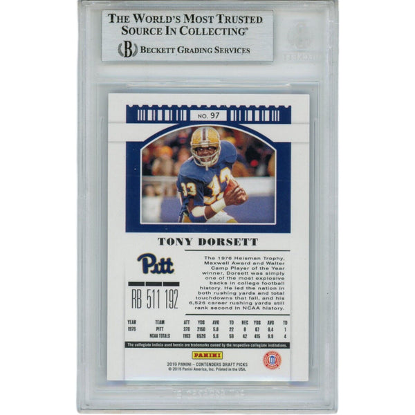 The number in the listing title is just an inventory sku for our records and is not the authentication number. The item pictured is a stock photo unless otherwise noted. This is a Pittsburgh Panthers 2019 Contenders Draft 1997 Slabbed Trading Card that was personally autographed by Tony Dorsett. Includes a certificate of authenticity from Beckett Authentication Services (BAS) and Denver Autographs.FREE SHIPPING within the USA on orders over $10!