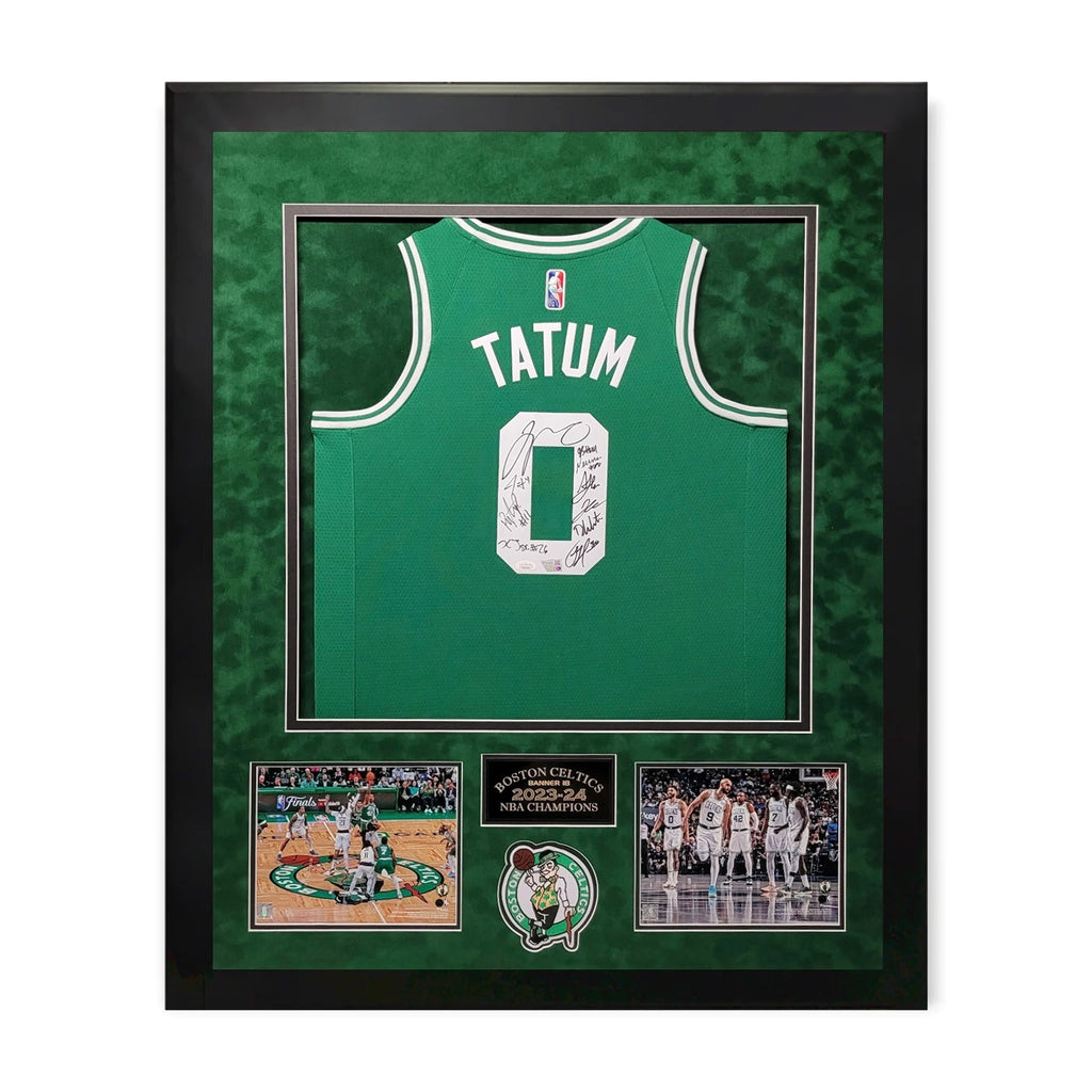 This jersey framed to 32x40 has been personally hand signed by Jayson Tatum, Derrick White, Payton Pritchard, Jrue Holiday, Al Horford, Jordan Walsh, Sam Hauser, Xavier Tillman & Neemias Queta of the 2023-24 NBA Champion Boston Celtics100% AuthenticCertificate of authenticity by Fanatics & JSA Exact location of signatures may varyasgmemorabilia.com