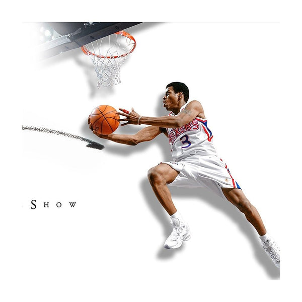 There were not only questions about his size coming out of Georgetown, but Allen Iverson was downgraded by scouts because they weren’t sure if he was a point guard or shooting guard. The answer instead was: yes. Iverson was both and so much more. He captured the Rookie of the Year Award in 1996 and didn’t look back, winning scoring titles, earning annual spots in the All-Star Game, winning an MVP trophy in 2001, leading the Sixers back to greatness and finally earning a well-deserved spot in the Basketball Hall of Fame in 2016. Upper Deck Authenticated has honored Iverson’s amazing career with two “The Show” pieces. This piece features a young Iverson driving to the basket and finishing a reverse layup. “The Show” is the largest Allen Iverson signature Upper Deck has produced. Measuring approximately two feet in length, his unique signature is the centerpiece of this UDA-designed piece of sports art. It comes framed and measures 46” x 20” for a museum-quality piece that will be the highlight of any wall. Iverson’s huge autograph is signed using a thick black marker. His signature is deemed authentic by virtue of Upper Deck Authenticated’s Five-Step Process. Authenticator : Upper Deck Authenticated History of item : Allen Iverson signed this item in the presence of a representative from Upper Deck Authenticated.