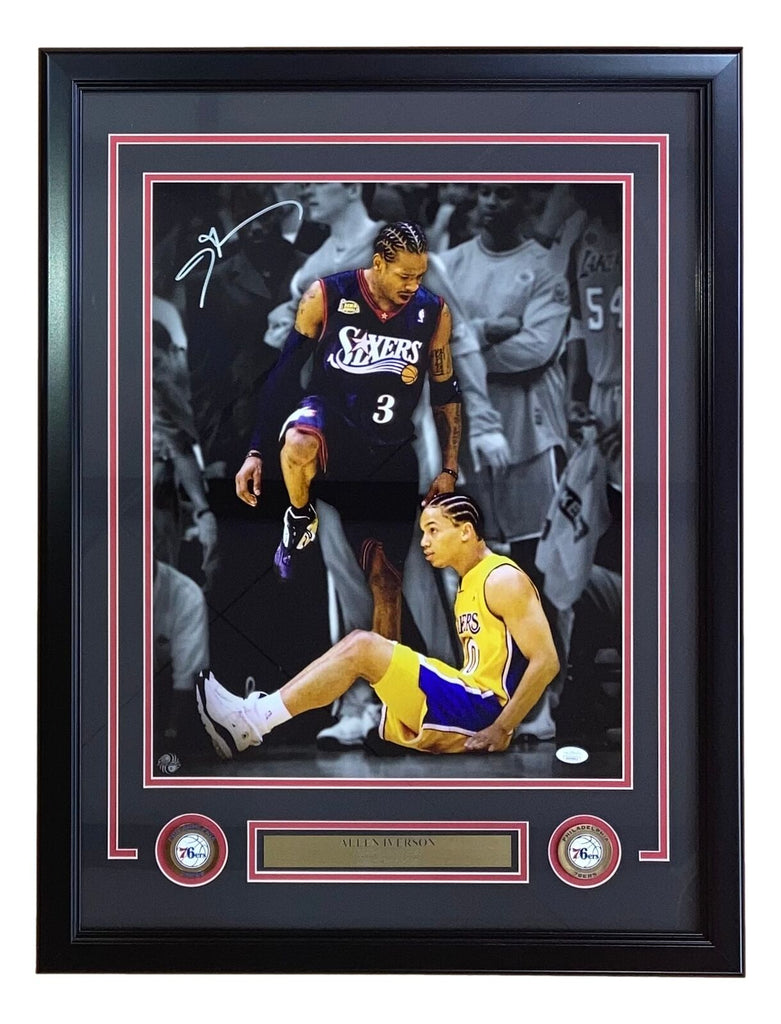 Featured is an Allen Iverson (Philadelphia 76ers) signed 16x20 photo. This photo has been hand signed by Iverson and comes with the JSA witnessed hologram and certificate of authenticity. This photo has been professionally framed and matted and is approximately 22x27. This photo would make a great addition to any sports memorabilia collection! SPECIFICATIONS Autographed By: Allen Iverson Team: Philadelphia 76ers Sport: Basketball Authentication: James Spence Authentication (JSA)