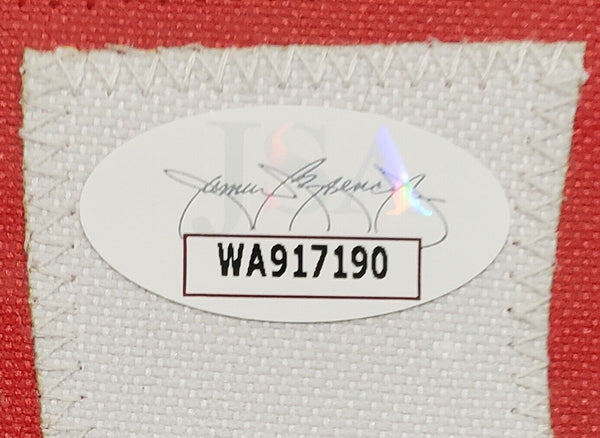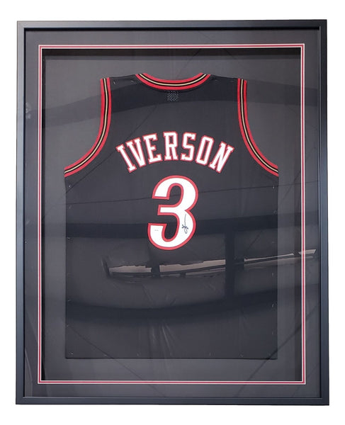 Featured is an Allen Iverson signed custom basketball jersey. This jersey has been hand signed by Iverson and comes with the JSA witnessed hologram and certificate of authenticity. This jersey features professionally sewn letters and numbers and is size XL. This jersey has no team tags or emblems and is intended as a sports collectible. This jersey has been professionally framed and matted and is approximately 32x42. This jersey would make a great addition to any sports memorabilia collection! SPECIFICATIONS Autographed By: Allen Iverson Team: Philadelphia 76ers Sport: Basketball Authentication: James Spence Authentication (JSA)