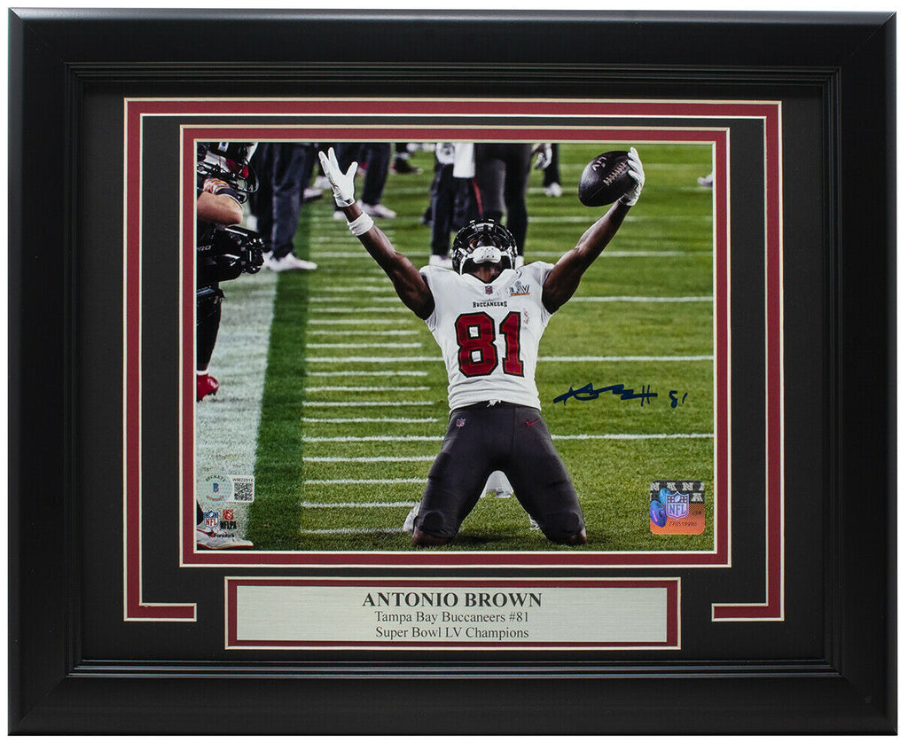 Featured is an Antonio Brown signed framed 8x10 Tampa Bay Buccaneers photo. This photo was hand signed by Antonio Brown and authenticated by Beckett authentication services. Included with the photo is a Beckett hologram and certificate of authentication. The frame measures approximately 14x11 in total size. The frame is ready to display. This item would make a great addition to any sports memorabilia collection!. SPECIFICATIONS Autographed By: Antonio Brown Team: Tampa Bay Buccaneers Sport: Football Authentication: Beckett Grading Services