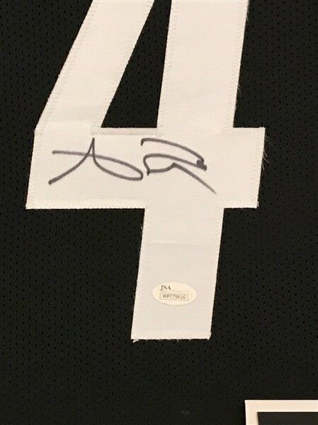 Custom frame measures approximately 34" x 42" in size and features a jersey which has been hand-signed in black felt-tip pen by Antonio Brown. The lot / autograph(s) includes an official James Spence Authentication (JSA) hologram and matching COA for authenticity purposes. The signing of this item was witnessed by JSA.Authentication: JSA COA