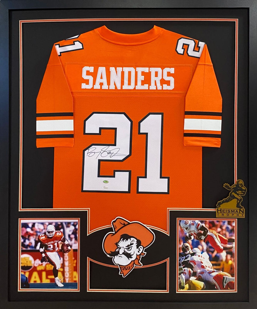 Barry Sanders Autographed Signed Framed Oklahoma State Heisman Jersey JSA