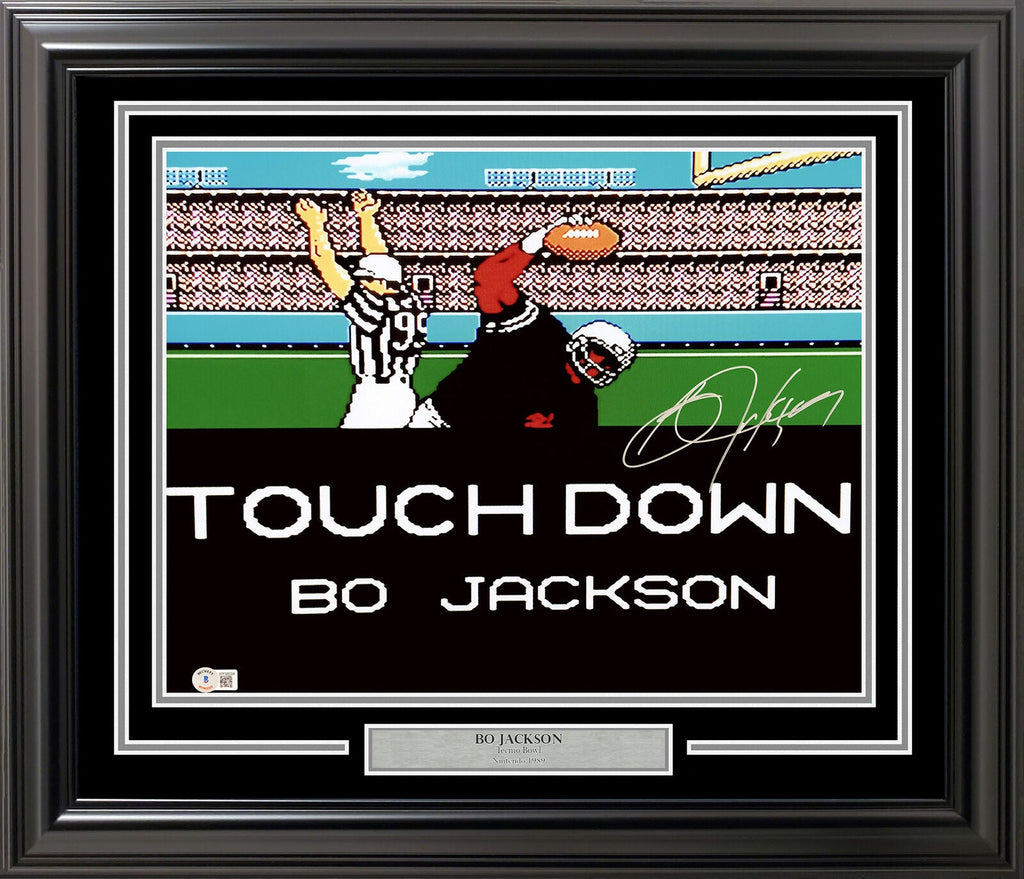 This is a Framed 16x20 Photo, approximately 24x28 with the frame, that has been hand signed by Bo Jackson. This item has been witnessed and certified authentic by Beckett Authentication (BAS) and comes with their tamper-proof witness sticker. A certificate can be printed on Beckett's website for the matching authentication number.