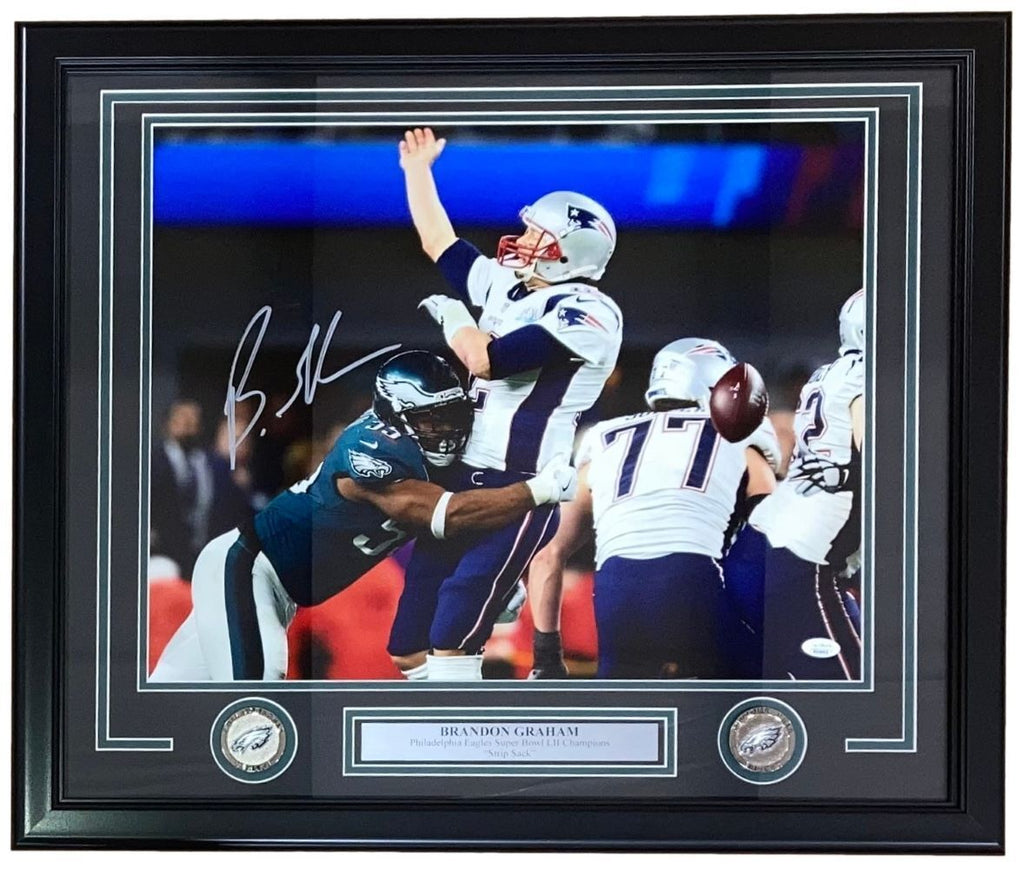 Featured is a Brandon Graham signed 16x20 Philadelphia Eagles photo. This photo has been hand signed by Graham and comes with the JSA witnessed hologram and certificate of authenticity. This photo has been professionally framed and matted and is approximately 22x27. This item would be a great addition to any sports memorabilia collection. SPECIFICATIONS Autographed By: Brandon Graham Team: Philadelphia Eagles Sport: Football Authentication: James Spence Authentication (JSA)