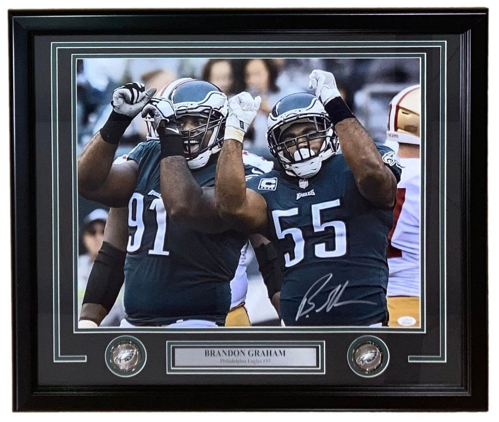 Featured is a Brandon Graham signed 16x20 Philadelphia Eagles photo. This photo has been hand signed by Graham and comes with the JSA witnessed hologram and certificate of authenticity. This photo has been professionally framed and matted and is approximately 22x27. This photo would make a great addition to any sports memorabilia collection. SPECIFICATIONS Autographed By: Brandon Graham Team: Philadelphia Eagles Sport: Football Authentication: Professional Sports Authenticator (PSA)