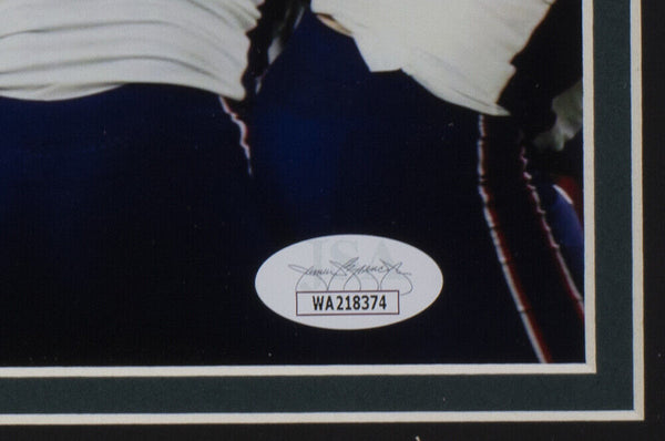 Featured is a Brandon Graham signed framed 8x10 Philadelphia Eagles football photo. This photo was hand signed by Brandon Graham and has been authenticated by JSA authentication services. Included with the photo is a JSA hologram and certificate of authenticity. Brand new professional framing featuring double matting and engraved nameplate. The frame measures approximately 14x11 in total size, and it is ready for display. This item would make a great addition to any sports memorabilia collection. SPECIFICATIONS Autographed By: Brandon Graham Team: Philadelphia Eagles Sport: Football Authentication: James Spence Authentication (JSA)