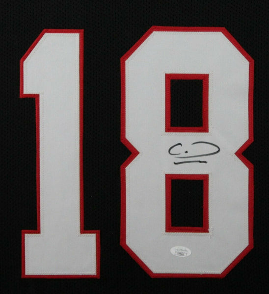 CALVIN RIDLEY AUTOGRAPHED & PROFESSIONALLY FRAMED PRO-STYLE JERSEY(Occasionally our own stock pictures are used at times due to quantity of framing, all frames will look identical as the one pictured)THE FRAMED JERSEY MEASURES 35"x 44" & COMES WITH THE FOLLOWING:-UV Protected Acrylic-Triple Acid Free Team Colored Matting-2 High Quality 8"x10" Photos-Team LogoEvery framed autographed jersey is accompanied with a tamper-proof hologram on the signed part of the jersey from one of the main authenticators in the industry (JSA, Beckett, PSA, etc.) and can be verified on their corresponding websites to prove authenticity.