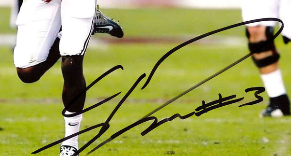 An Alabama Crimson Tide Unframed 8x10 NCAA Photo - White Jersey Running hand signed by Calvin Ridley. The item and signature are in excellent condition - Calvin is a wide receiver for Alabama Crimson Tide and was First-team All-SEC (2017), Second-team All-SEC (2016), 2x CFP National Champion (2015, 2017), 2x SEC Champion (2015, 2016), and USA Today Freshman All-America (2015) - AUTHENTICATION: The item is accompanied by a JSA Certificate of Authenticity - JSA Serial Numbered and Databased Hologram