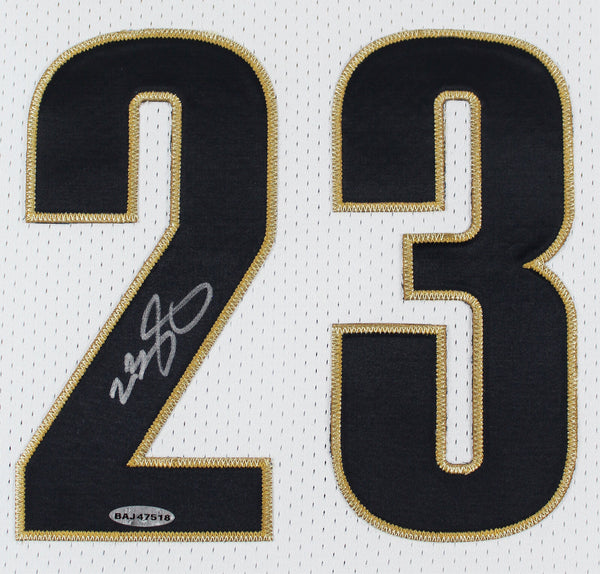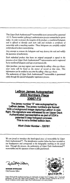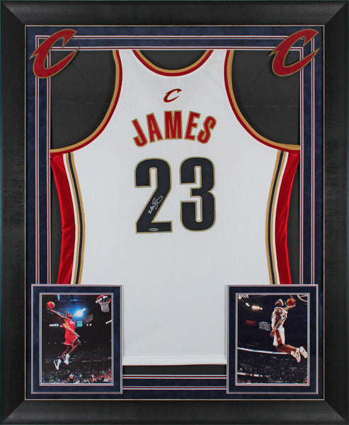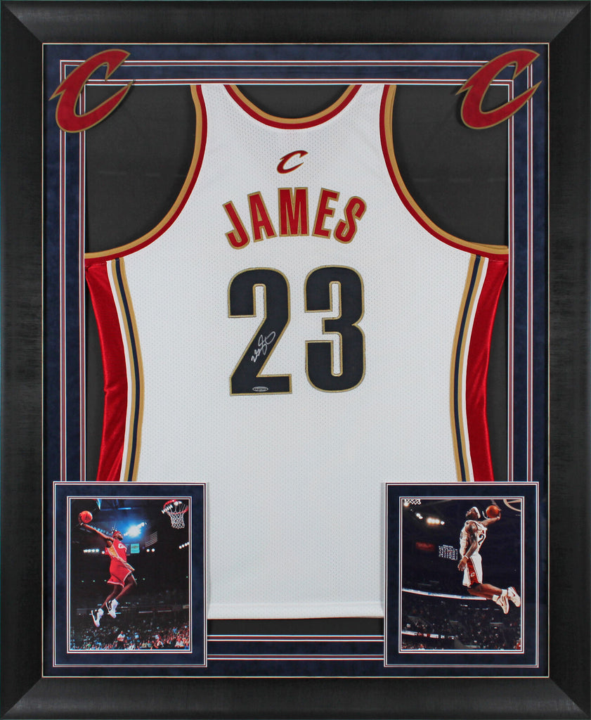 This Autographed White Framed Jersey has been Personally Signed by LeBron James of the Cleveland Cavaliers. This item is 100% Authentic to include a Certificate of Authenticity (COA) / hologram by UDA. The authenticity can be verified on Upper Deck Authentic website. This item has been professionally framed to overall dimensions of approximately 36.5 x 45 inches. This is a X-Large sized Framed Jersey.