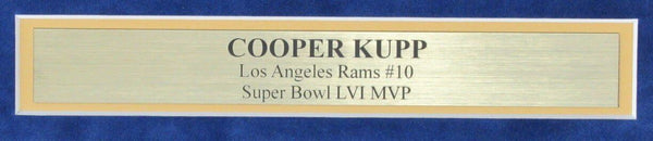 Cooper Kupp Autographed/Inscribed "SB LVI Champs" 16x20 Photo Los Angeles Rams Framed. The outer frame size is 26 inches x 22 inches. This photo is authenticated by BAS/Beckett and includes their Tamper-proof Sticker and Certificate of Authenticity.